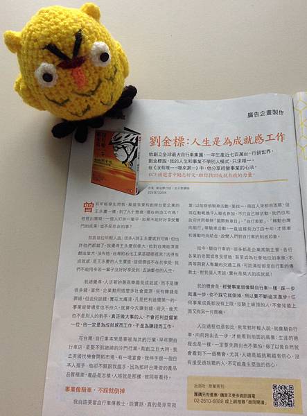 文章中說到:生涯的過程如同騎自行車,向前跨出去一步才能看到前面的風景,做了之後自然就能看到下一個機會。所以在確定生活過得去之後,要好好的思考自己想要的生活,如果可以的話就為成就感而工作吧!因為當你完成目標之後,就會覺得自己並非像想像中的那樣無能,還是有許多事情是你自己做得到的唷!