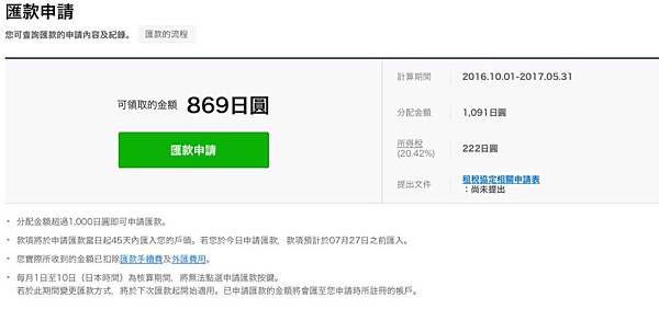今年六月LINE的貼圖收入終於累積超過1000日圓了,不過這時要注意不要直接就轉換成現金唷!因為要繳將近21%的稅後,剩餘的錢才能轉成日幣現金,現在日幣匯率又那麼低,貼圖的收入如果能多留一點在自己的口袋裡,何樂而不為呢?